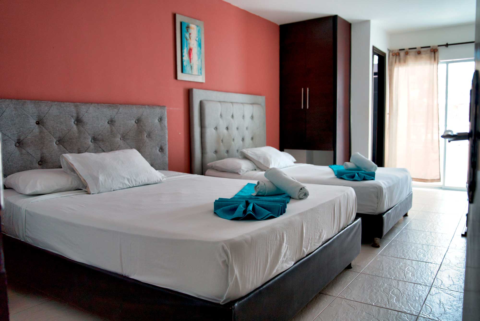 Habitación con dos camas dobles, ideal para mayor confort.