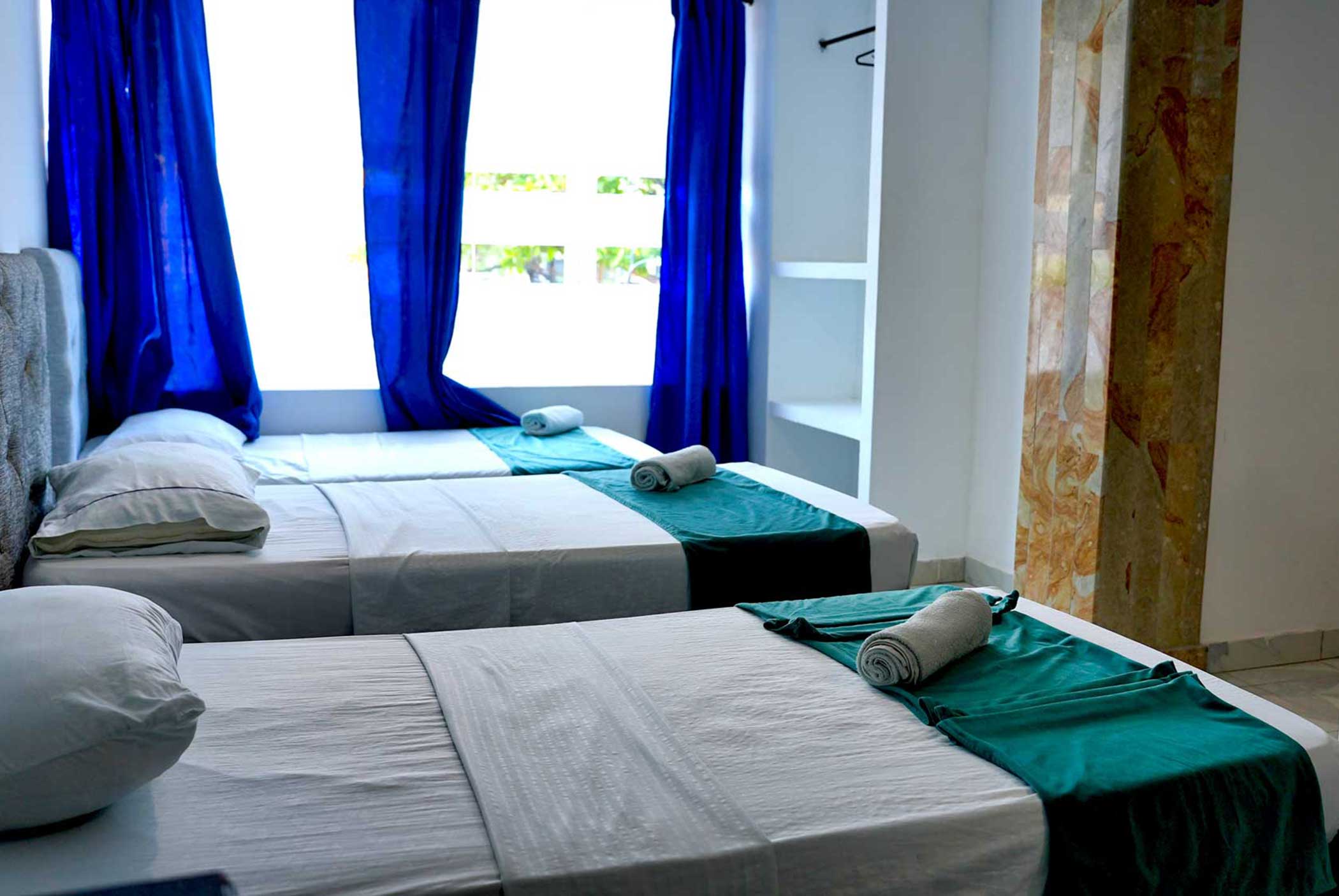 Habitación con dos camas doble, ideal para mayor confort.