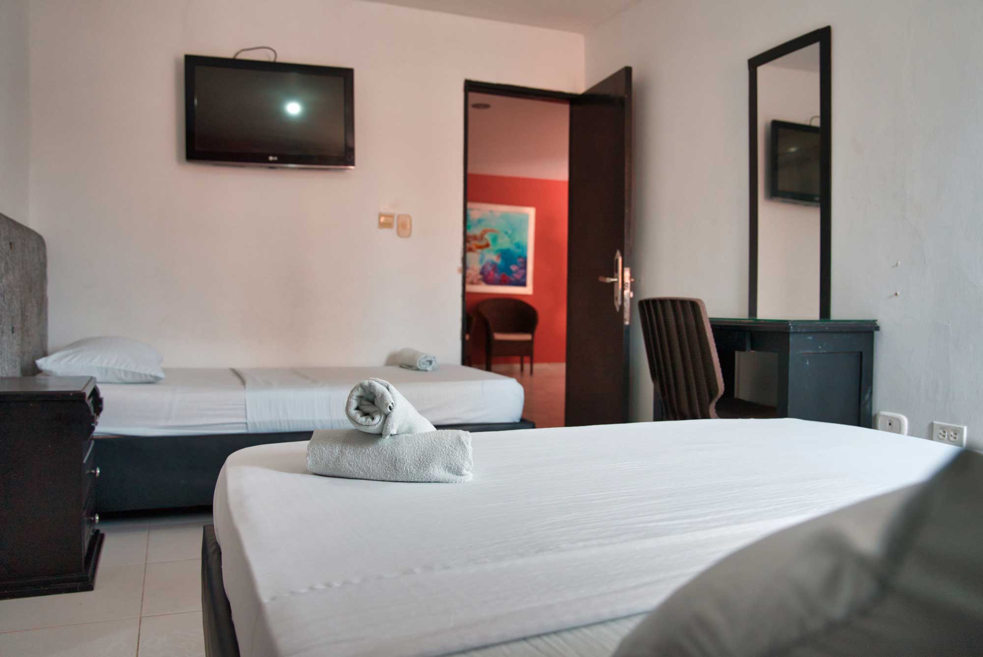 Amplia habitación con 2 camas, ideal para familia.
